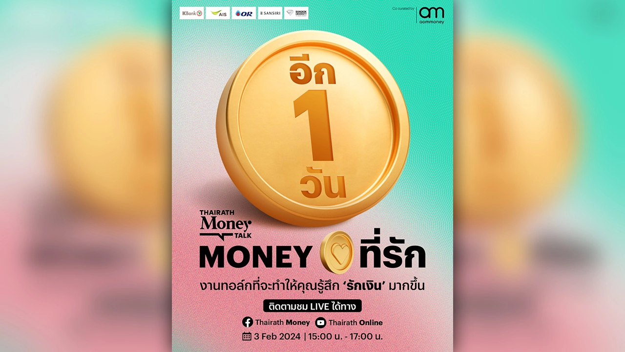 Thairath Money ร่วมกับ aomMONEY ชวนทุกคนมารู้จัก ‘เงิน’ ให้มากกว่าที่เห็น ใช้มันให้เป็นมากกว่าที่ ‘คิด’ กับเวทีทอล์กที่จะเปลี่ยนแปลงวิธีคิดเกี่ยวกับเรื่องเงิน และจะทำให้คุณรู้สึก ‘รักเงิน’ ของคุณมากขึ้นพบกับ Speaker สุด Exclusive คุณก้อย วิวรรณ ธาราหิรัญโชติ นายกสมาคมนักวางแผนการเงินไทยคนแรก ผู้เขียนหนังสือ เงินไม่ใช่ทุกอย่างแต่ทุกอย่างเริ่มต้นที่เงินมา ‘รักเงิน’ พร้อมกันในวันเสาร์ที่ ๓ กุมภาพันธ์ ๒๕๖๗ รับชม LIVE พร้อมกัน ทาง Facebook: Thairath Money และ Youtube: Thairath Online เวลา ๑๕:๐๐ – ๑๗:๐๐ น.